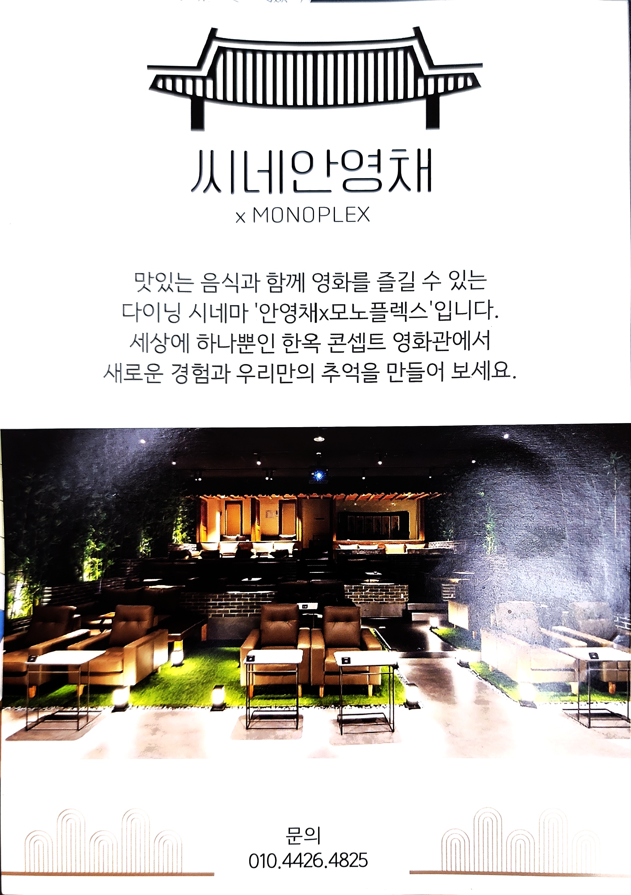 씨네안영채 × 모노플렉스 다이닝 씨네마 장소활용방법 (독립영화 상영 가능)대여가격